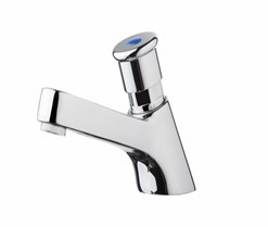 Одно водный самозакрывающийся смеситель для раковины с кнопочным управлением, с задержкой закрытия 8–12 секунд.